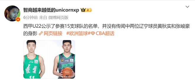 在今年的全国U21青年篮球锦标赛上,山东男篮与辽宁男篮发生大规模冲突,多人遭遇重罚,其中辽宁男篮球员黄秋实和张峻豪被禁赛3年。此前辽宁媒体人“田掌门”率先爆料:张峻豪和黄秋实有望登陆即将在秋天开打的西班牙U22联赛。 随后有其他辽宁媒体人也确认了这一消息。